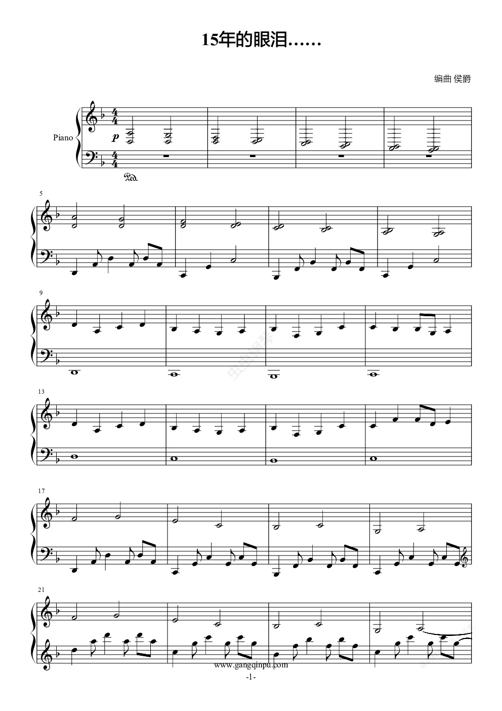 钢琴谱:15年的眼泪……(一个新手的即时……)