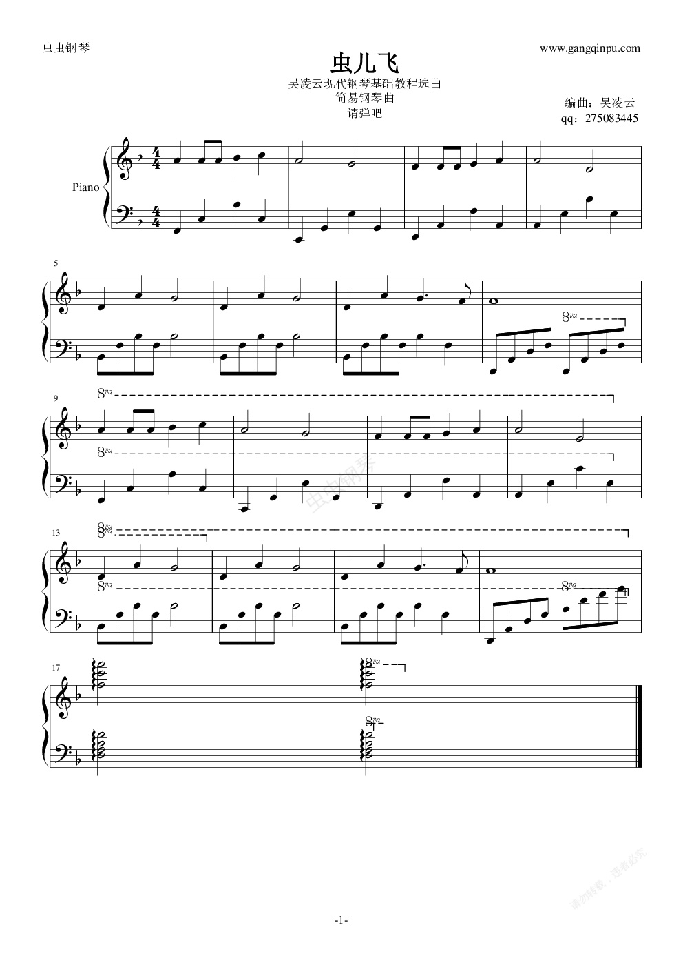 钢琴谱:虫儿飞 简易钢琴谱子 新钢琴基础教程谱