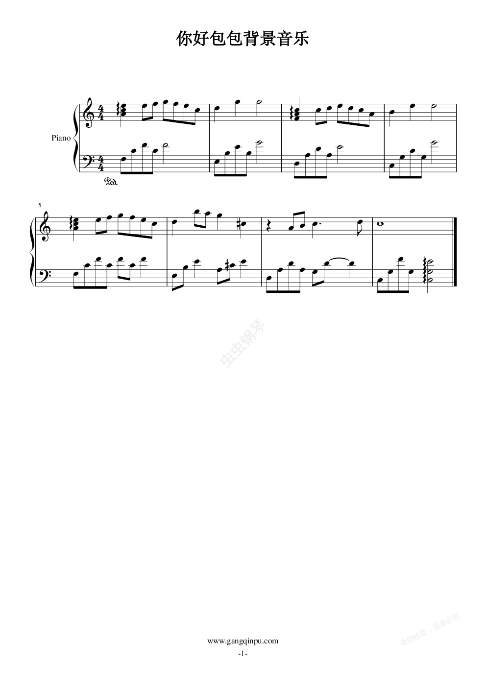 钢琴谱:你好包包