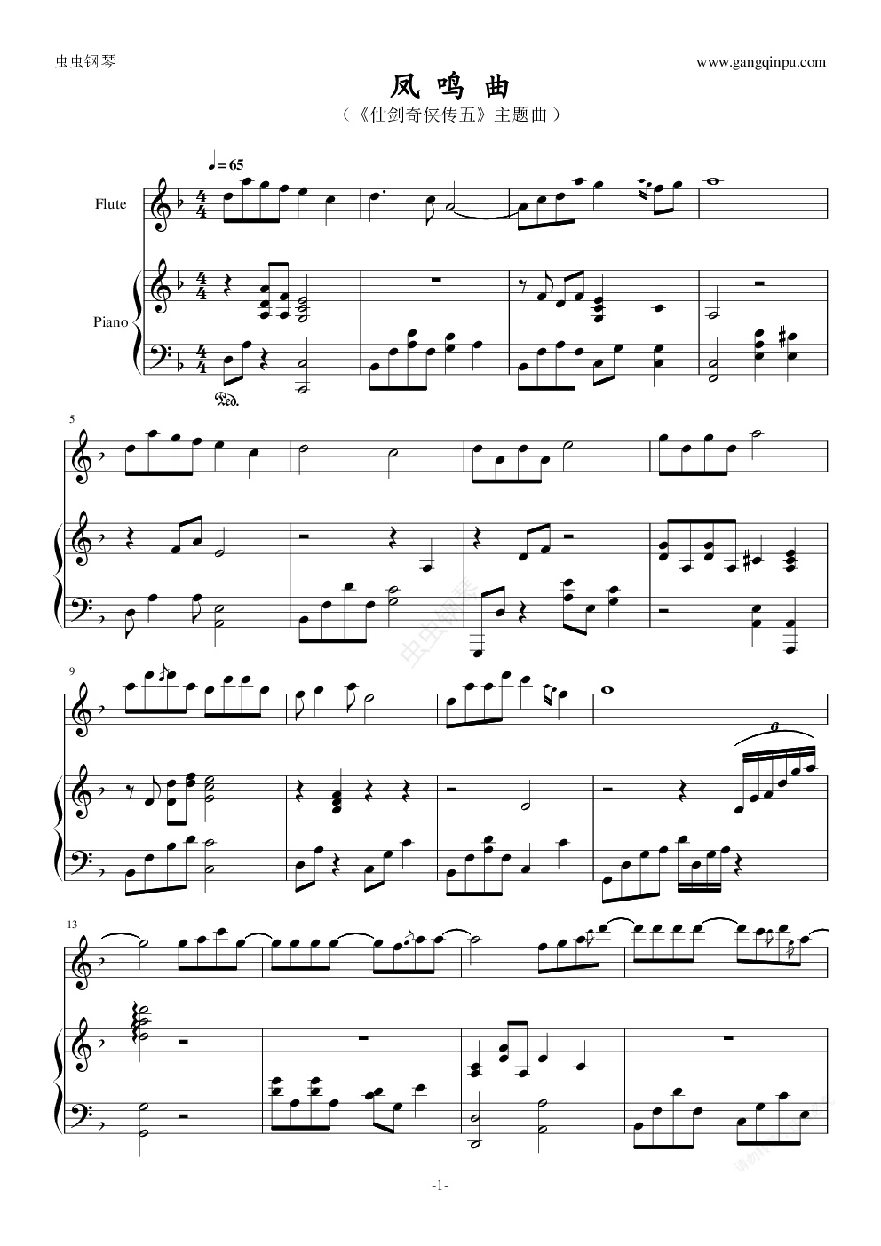 钢琴谱:凤鸣曲(《仙剑奇侠传五》主题曲)