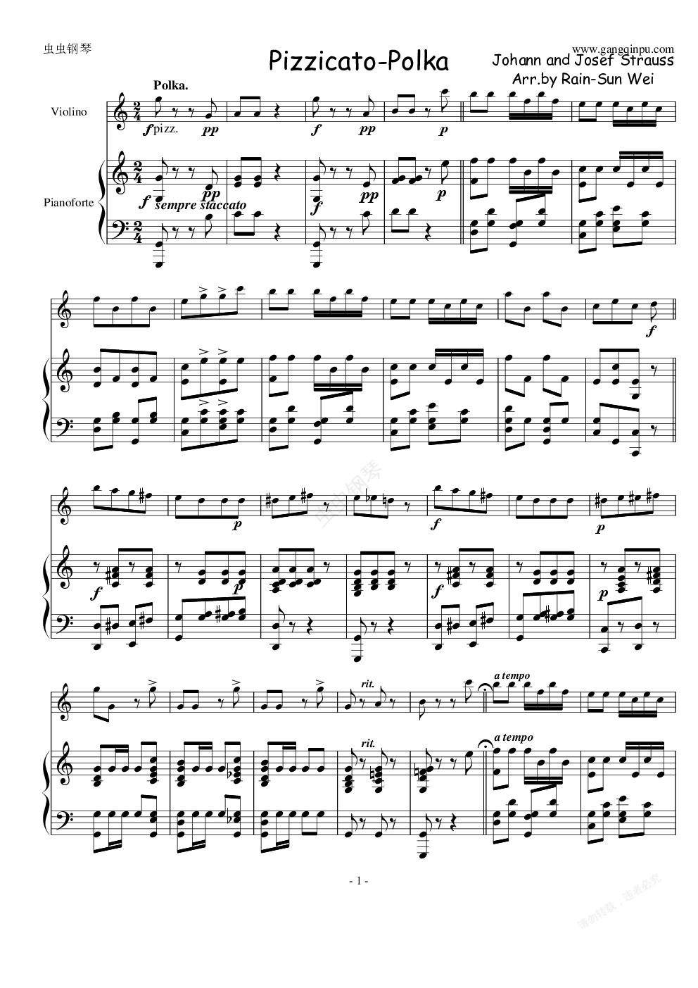 钢琴谱:拨弦波尔卡 小提琴 钢琴