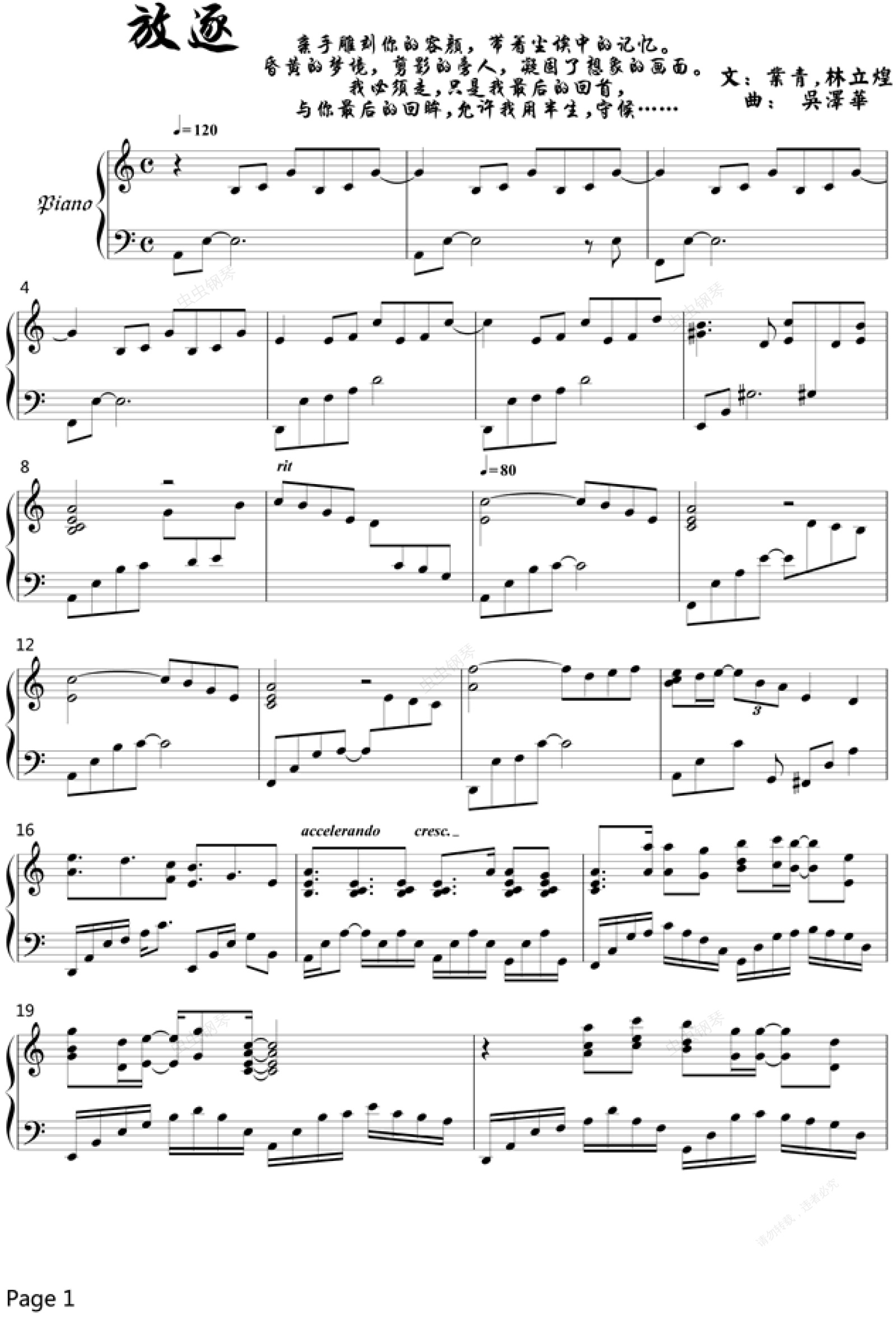 您的位置: 首页 > 钢琴谱库 > 放逐