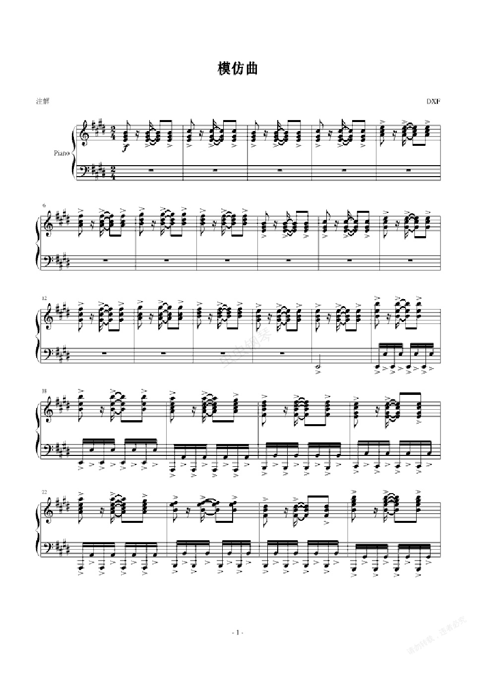 钢琴谱:模仿曲