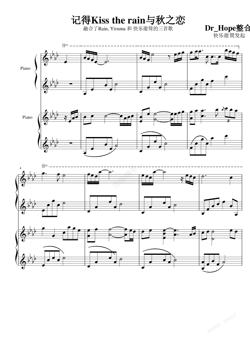 钢琴谱:kiss the rain遇上秋之恋