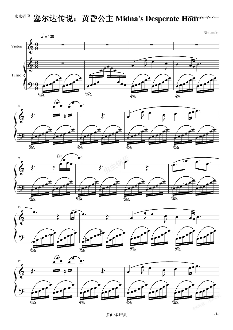 钢琴谱:塞尔达传说:黄昏公主 Midnas Desperate Hour