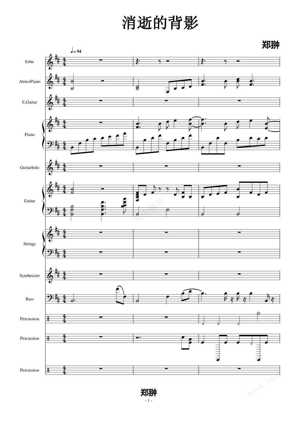 钢琴谱:消逝的背影