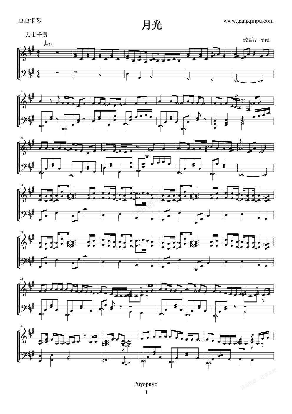 钢琴谱:月光-鬼束千寻 演奏版