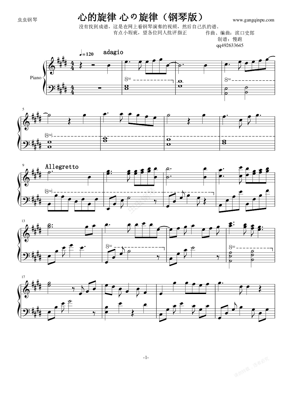 钢琴谱:TARI TARI 心的旋律
