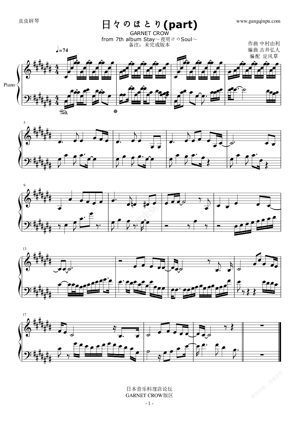 钢琴谱:日々のほとり(部分)-柯南歌手