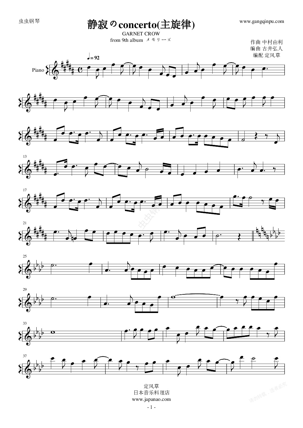 钢琴谱:静寂のconcerto(主旋律)-柯南歌手