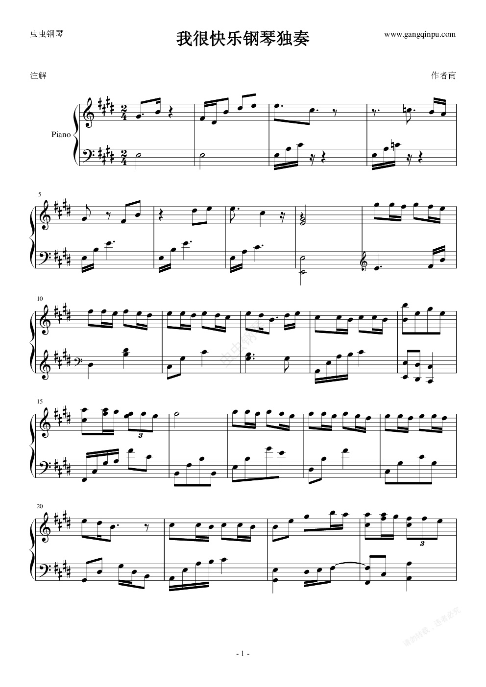 钢琴谱:我很快乐钢琴演奏版
