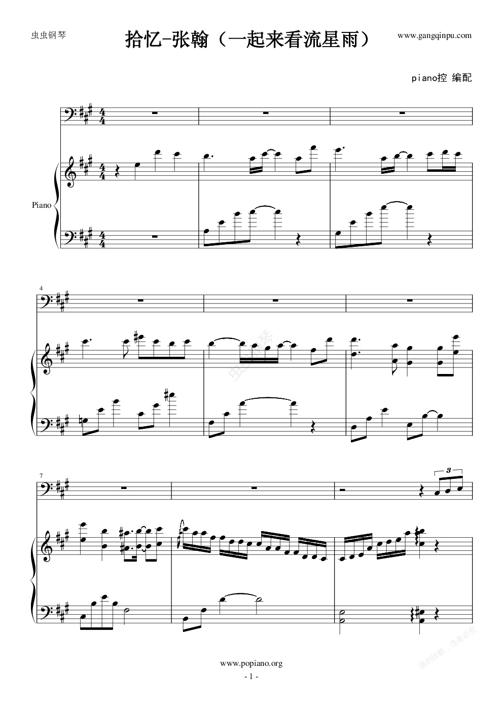 钢琴谱:拾忆-张翰(一起来看流星雨)