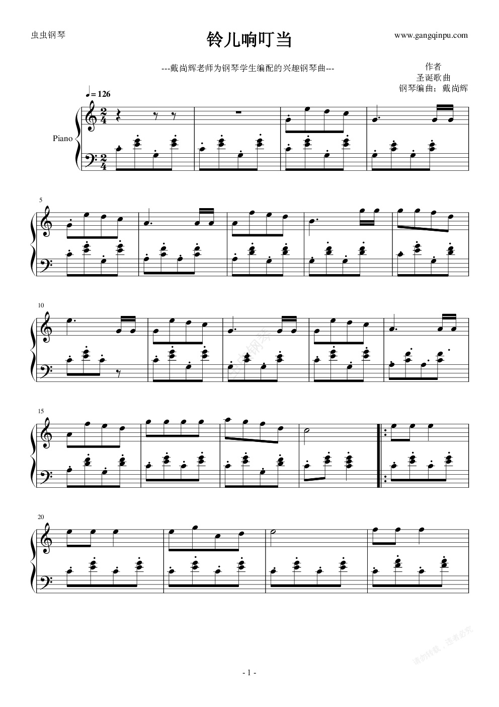 钢琴谱:铃儿响叮当少儿简单版《圣诞歌曲》
