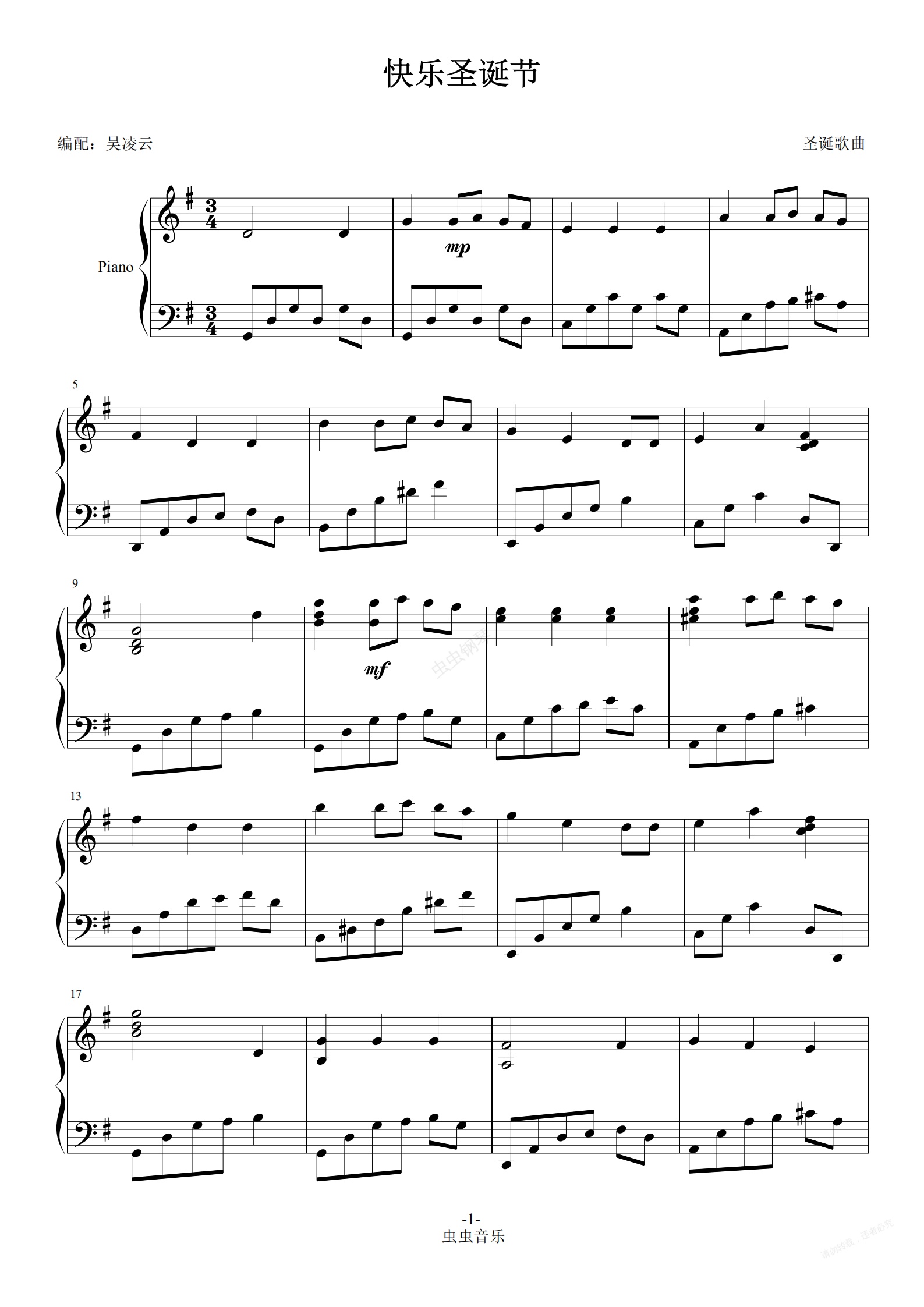钢琴谱:快乐圣诞节 (圣诞节轻音乐)