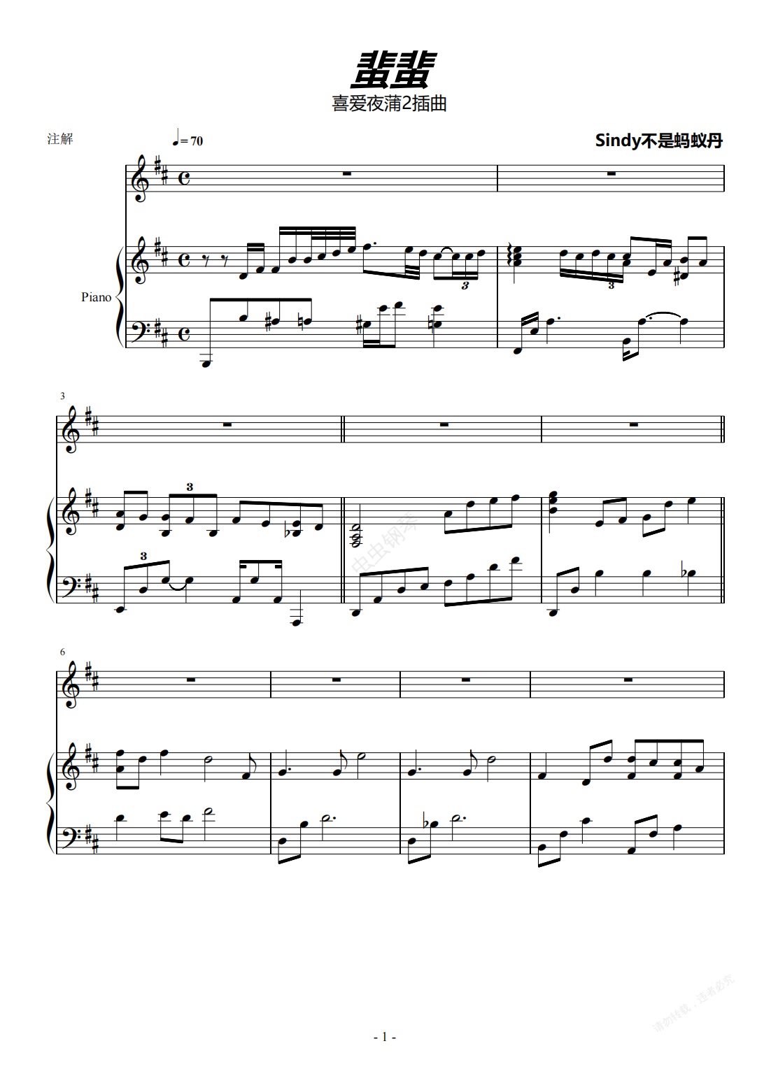 钢琴谱:蜚蜚—弹唱版