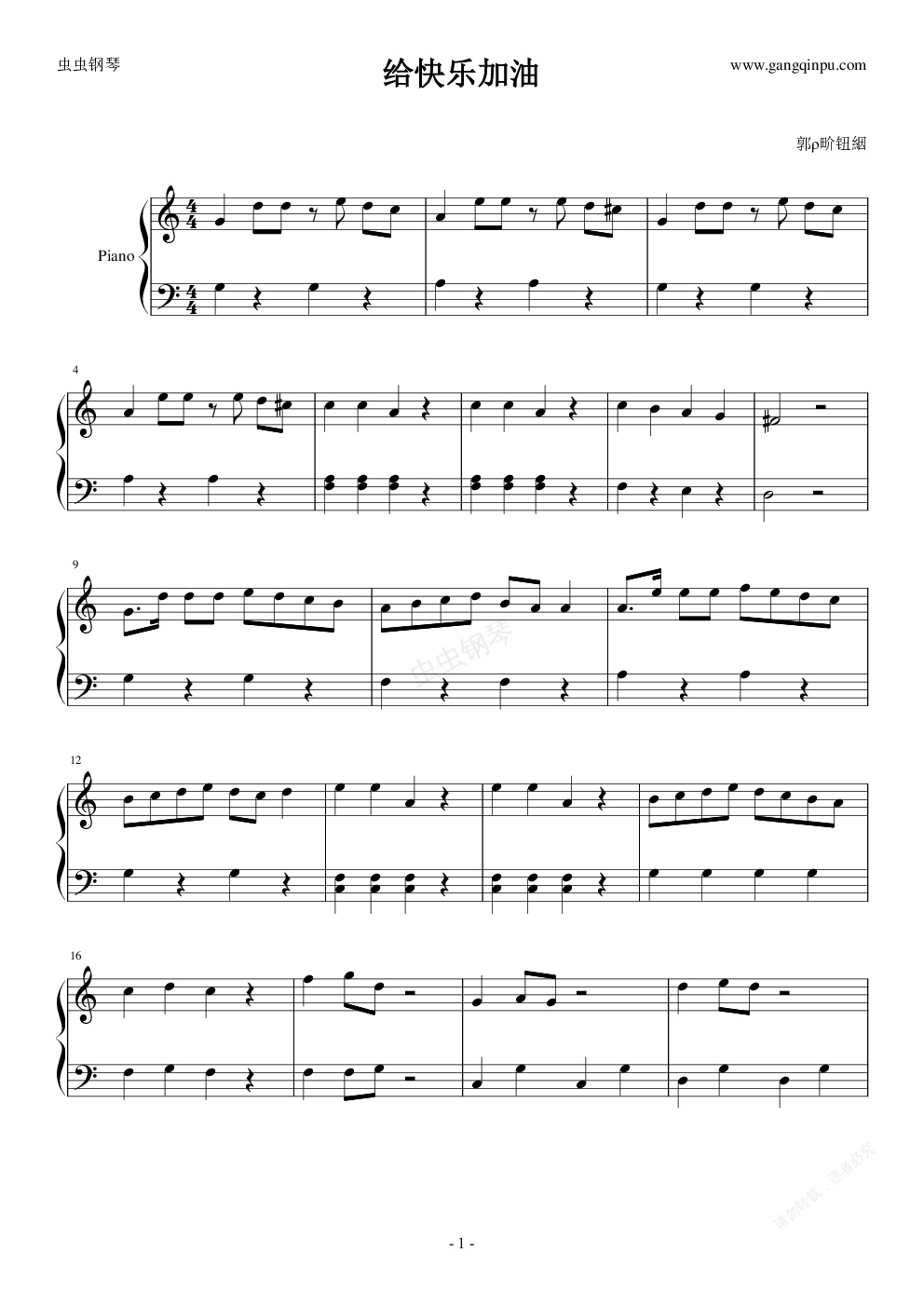 钢琴谱:给快乐加油