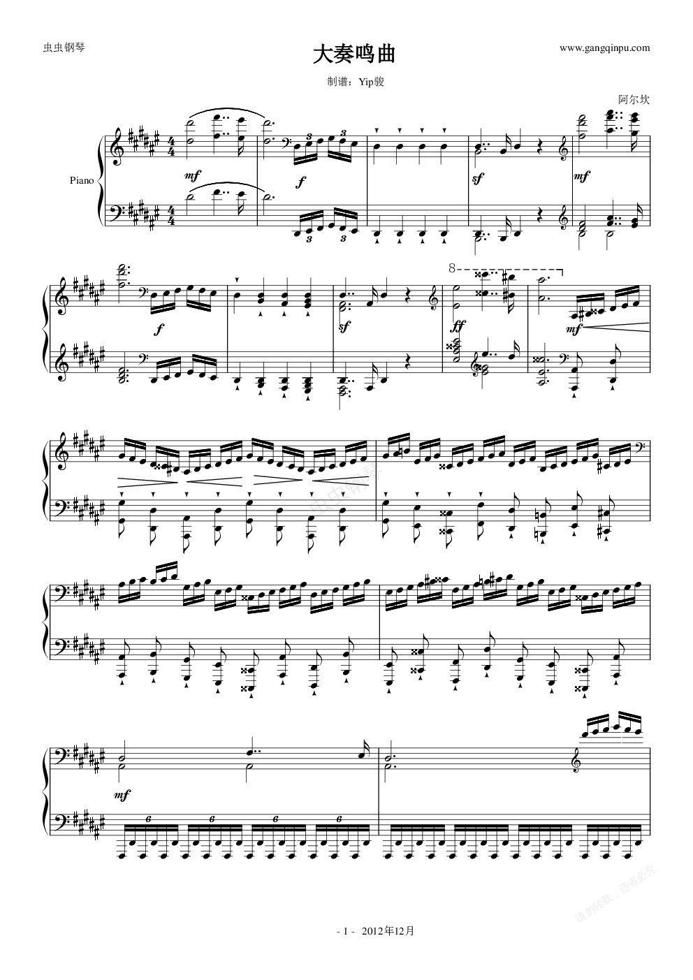 好久没做过古典乐曲的谱子了,现呈上阿尔坎的《大奏鸣曲》第二乐章作为新年礼物送给大家~呵呵。