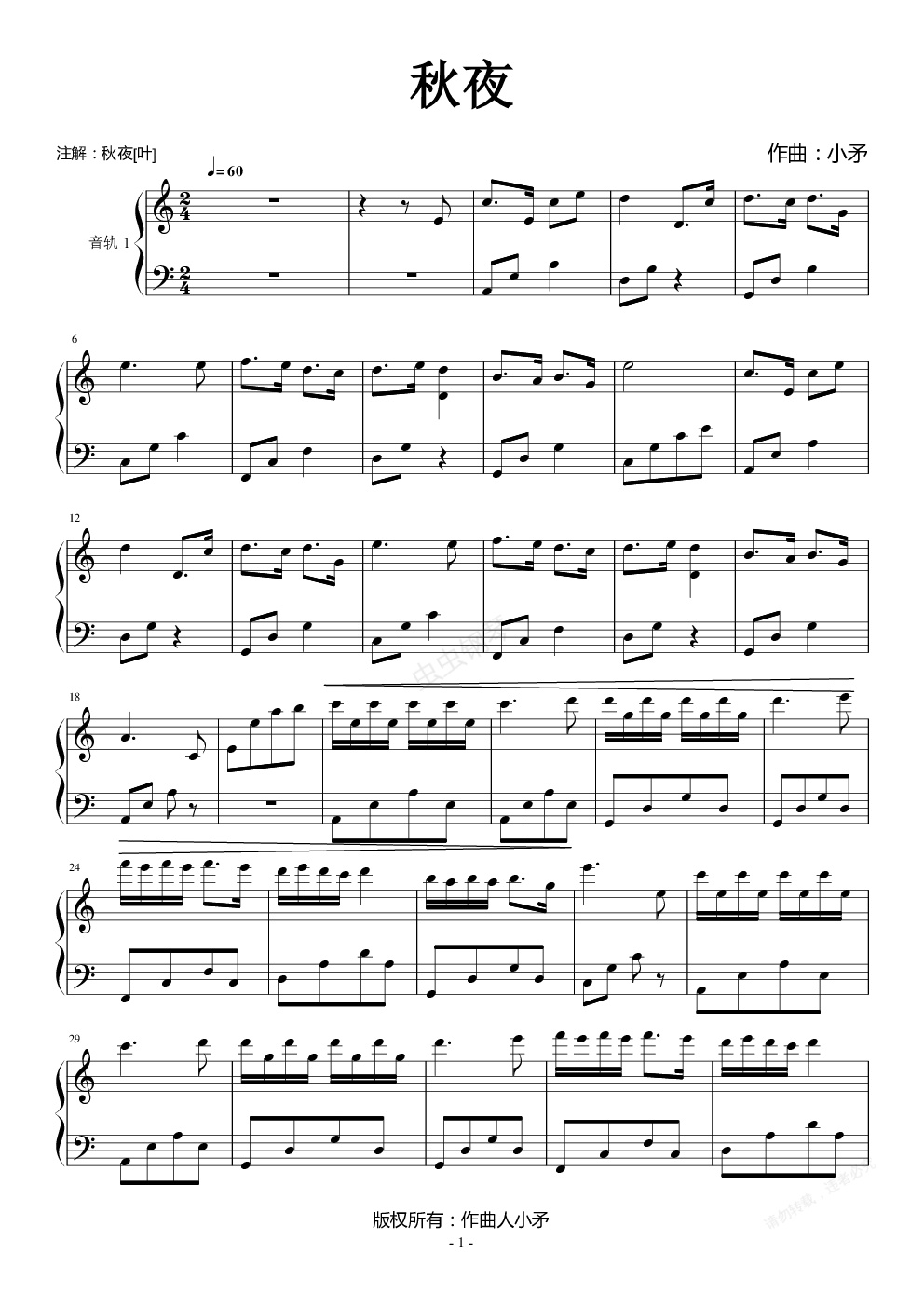 本人是菜鸟级,勿喷,不足之处还请大师多多点评!! 秋夜【叶】:秋天落叶的凄凉,它有唯美的时刻,夜晚的落叶更为伤感,孤独,所以取名为【秋夜】。 这首曲子参杂了我的小情感,内心的所有都寄托给了这首曲子,凄凉,期盼,惆怅,你听了就会懂,那份唯美只不过是那么一瞬间!!!