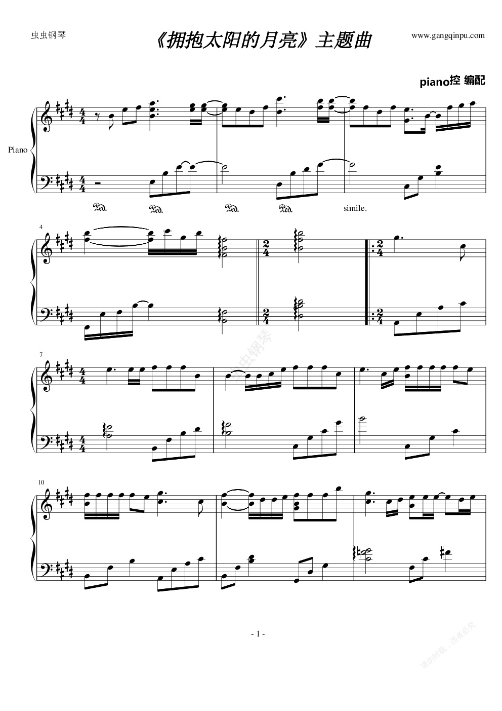 钢琴谱:韩剧《拥抱太阳的月亮》主题曲