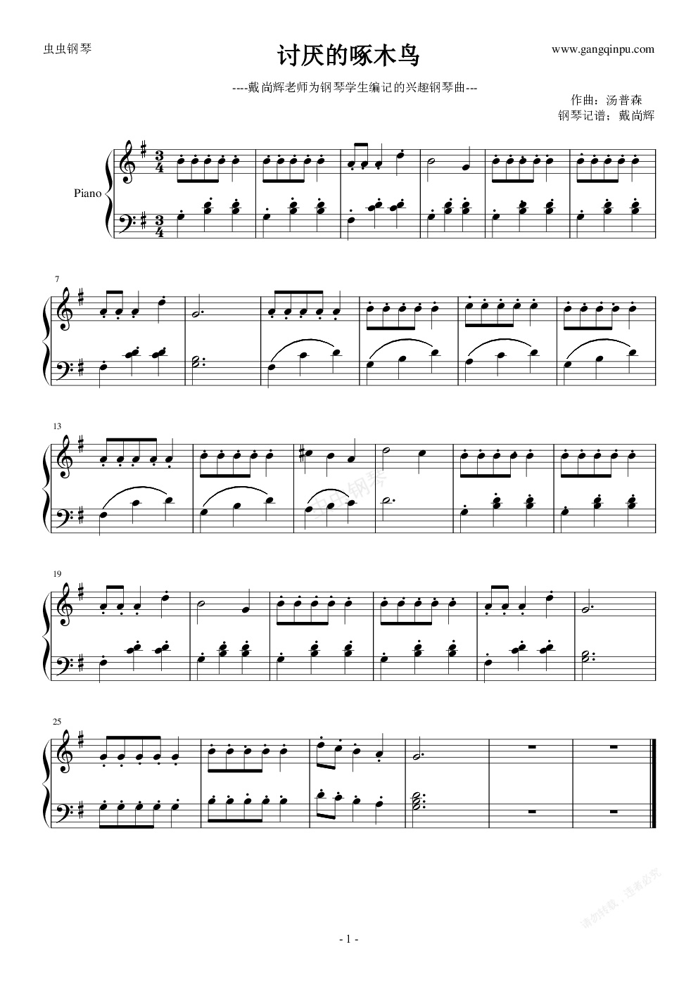 钢琴谱:讨厌的啄木鸟--幼儿必学的钢琴曲