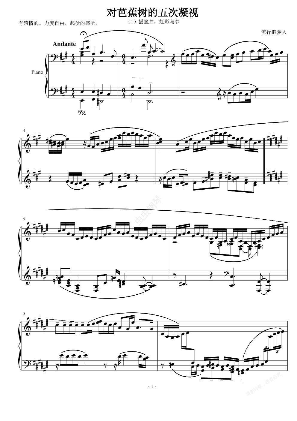 钢琴谱:对芭蕉树的五次凝视, 摇.虹.梦