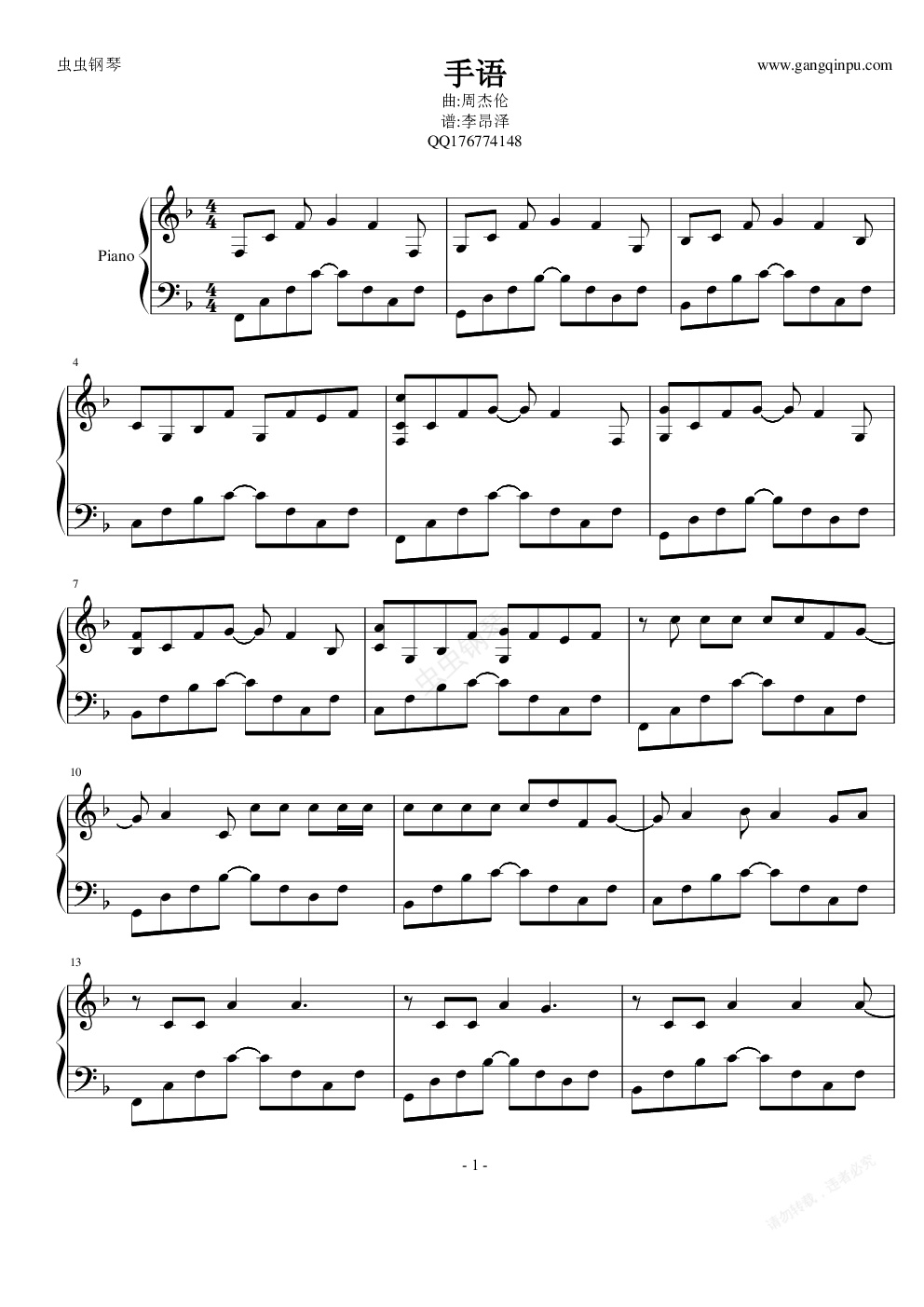 钢琴谱:手语(十二新作)