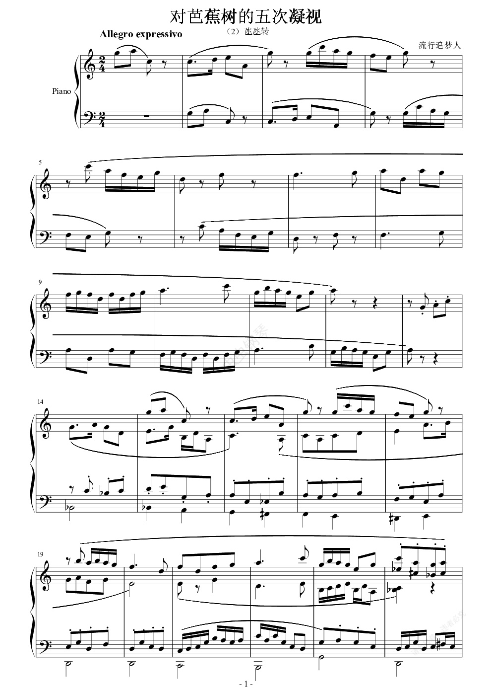 钢琴谱:对芭蕉树的五次凝视, 氹氹转