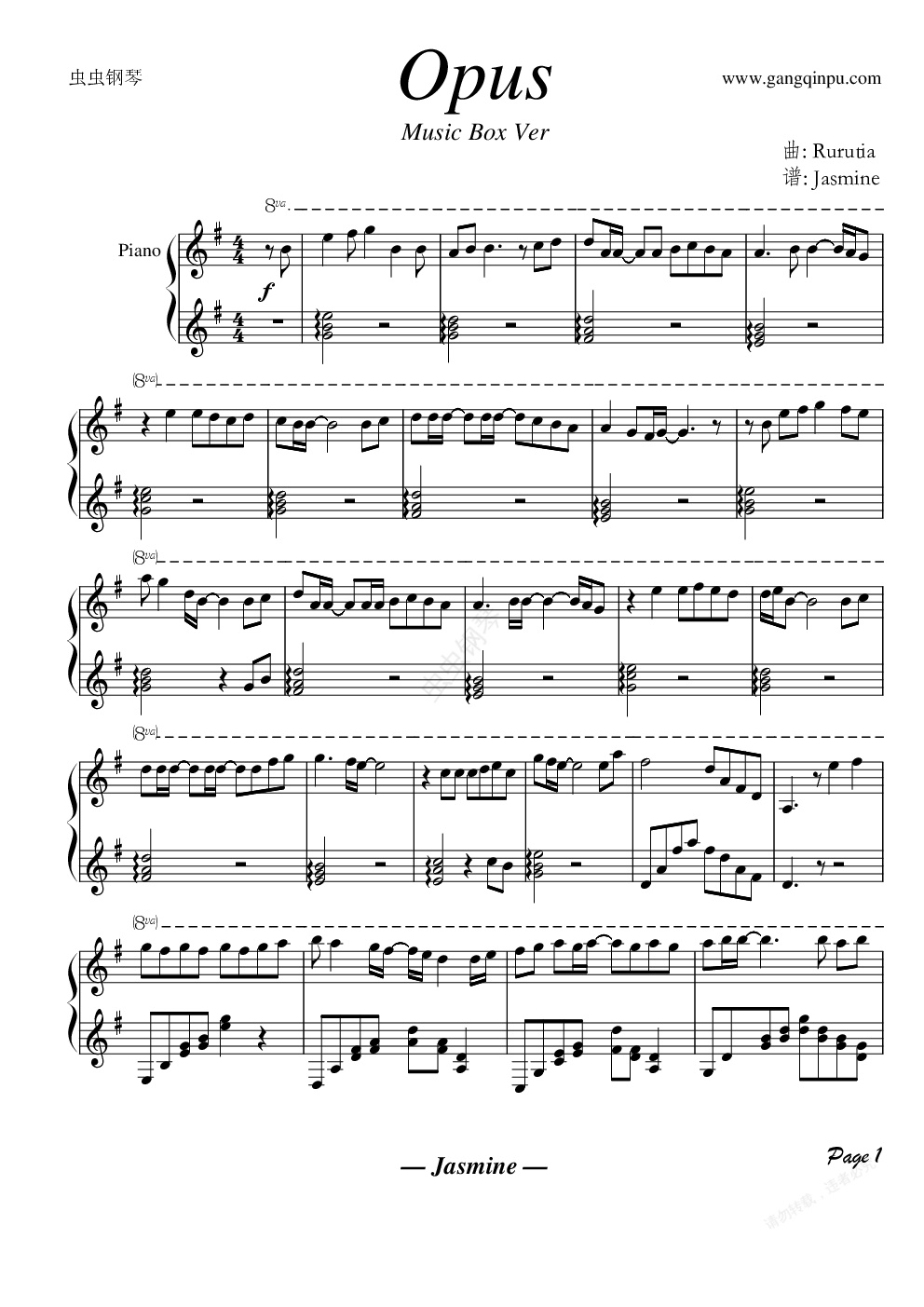 钢琴谱:【Rurutia】Opus (Music Box Ver)