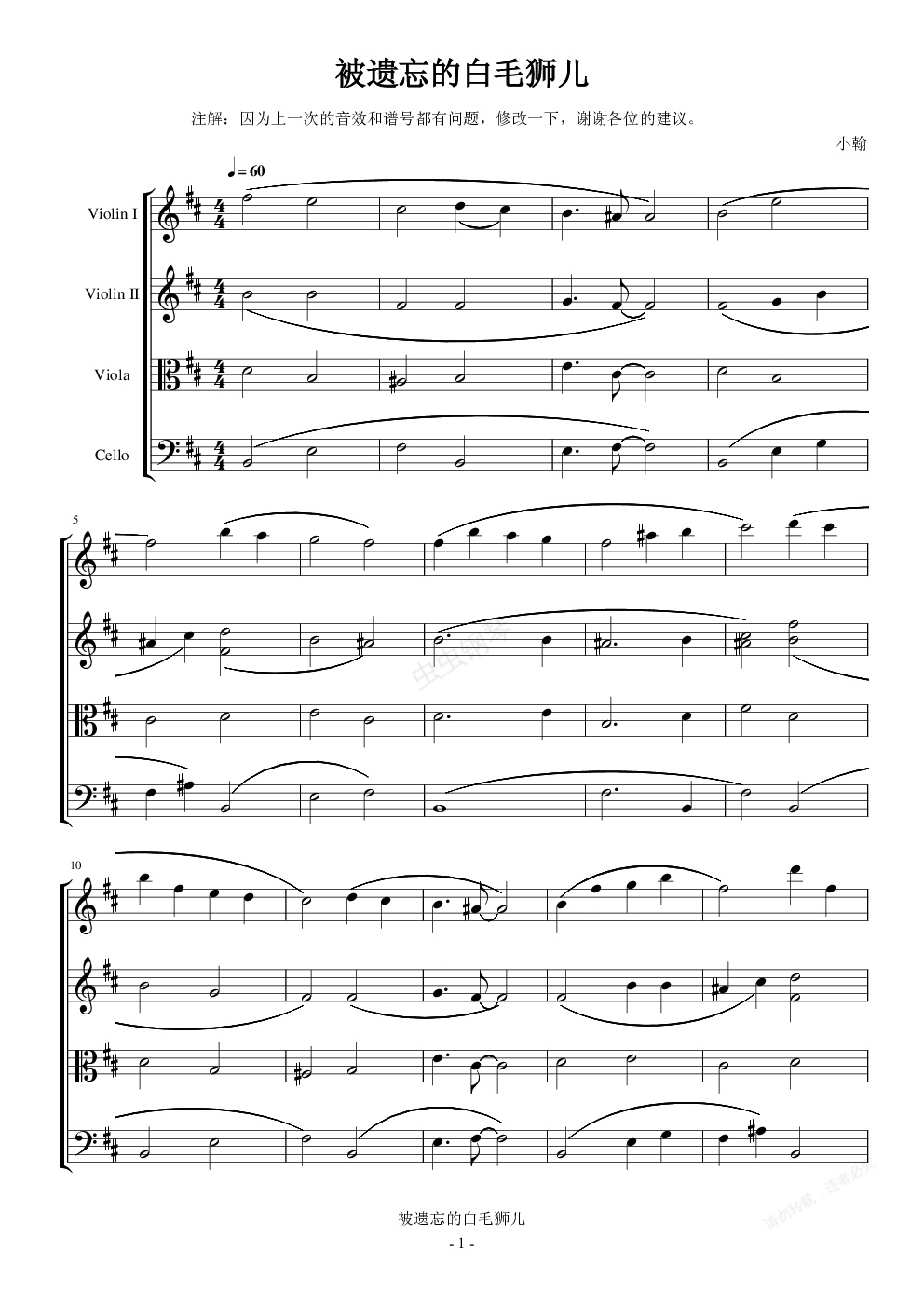 这是第一次写的弦乐,小翰就不管它是不是和声切分、K46乱用、内声部大跳了,的确存在问题,希望大家指点,谢谢!