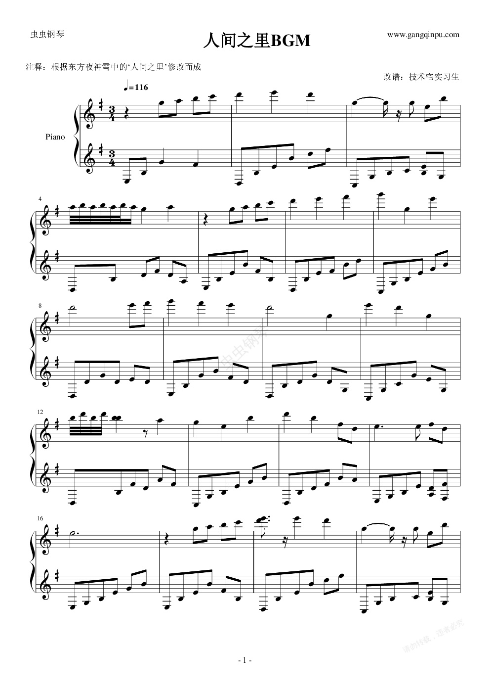 此谱是游戏‘东方夜神雪’中的一首BGM,由‘’生成,再经过本人的一些修改而成,而非本人原创。本人很喜欢此作品,但没有在网上找到相关琴谱,所以在此分享给同样喜欢这首作品的爱好者们。如有琴谱冲突,纯属巧合。