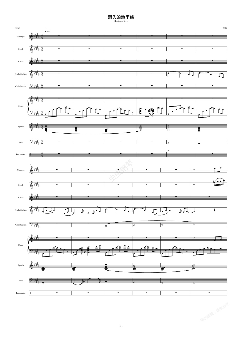 钢琴谱:消失的地平线Illusion of love