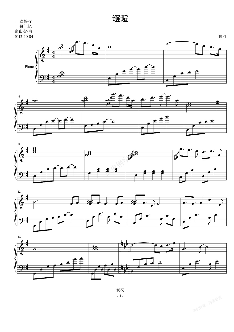 钢琴谱:(心情印记)邂逅