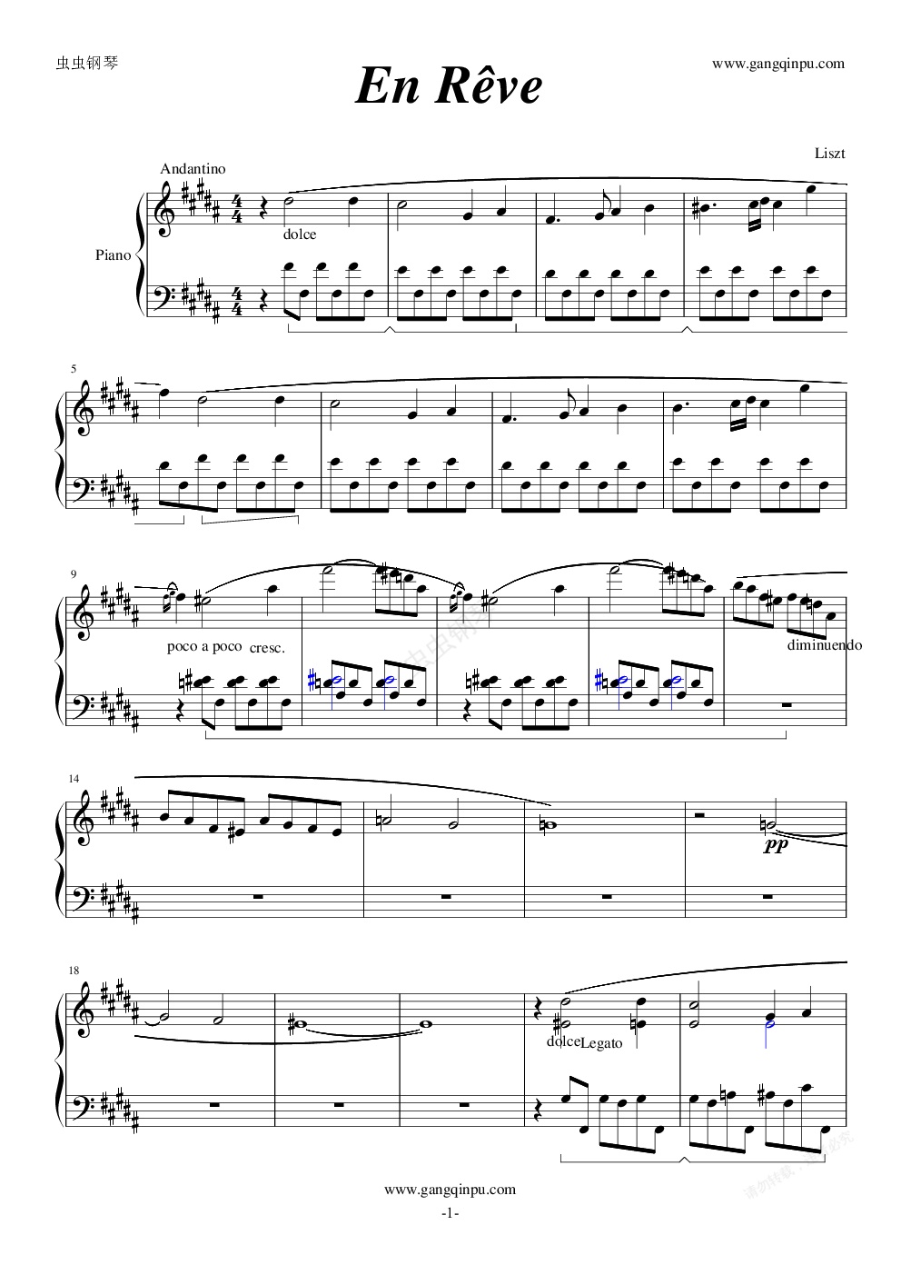 钢琴谱:S.207 En Reve(梦后)—李斯特