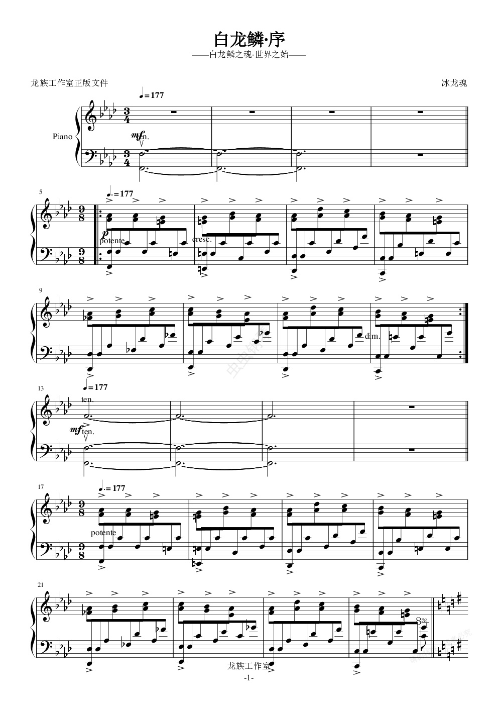 钢琴谱:白龙鳞·序
