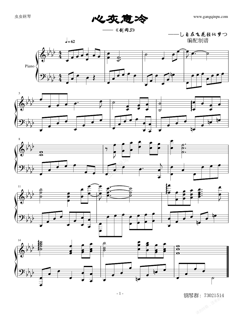 钢琴谱:(洛道)心灰意冷——剑侠情缘3