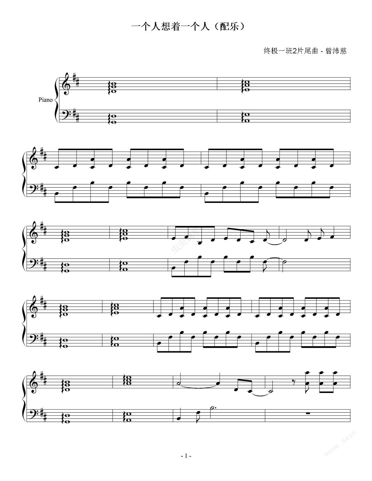 钢琴谱:一个人想着一个人(配乐)- 曾沛慈