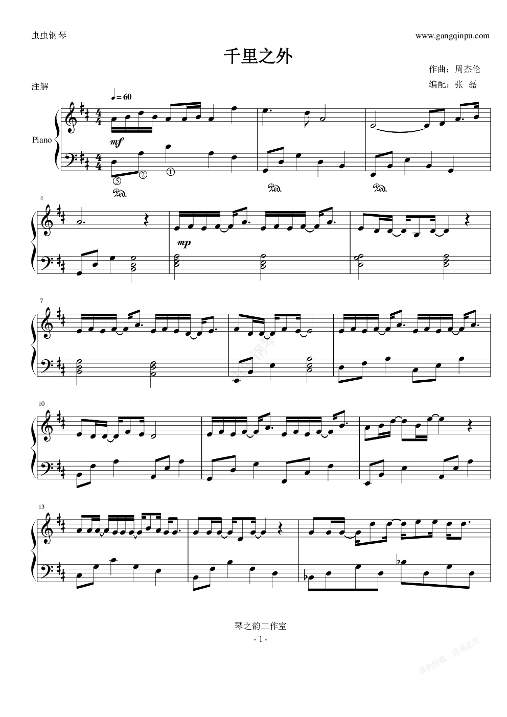 钢琴谱:千里之外