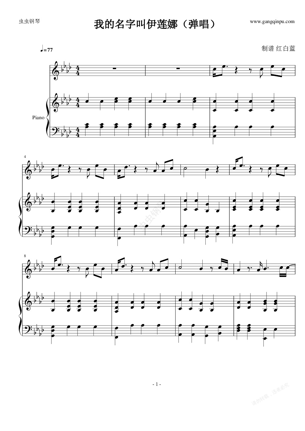 钢琴谱:我的名字叫伊莲娜