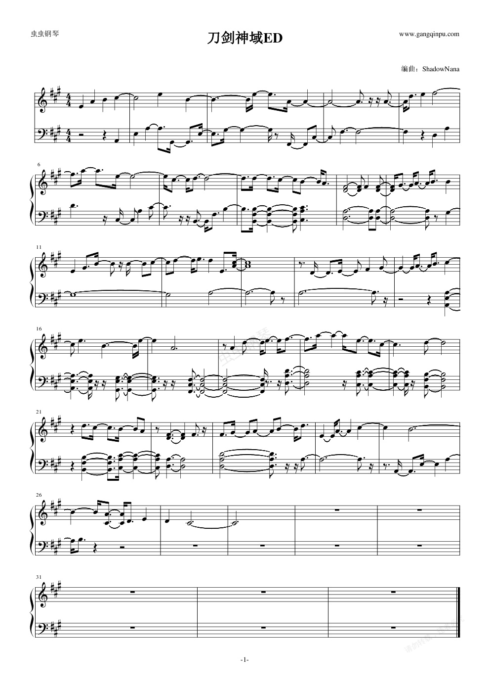 钢琴谱:刀剑神域ED 娜娜第三弹~