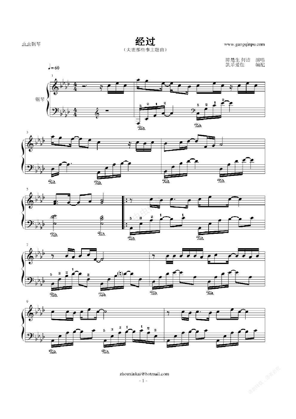 钢琴谱:去年热播的《夫妻那些事》的主题曲——《经过》