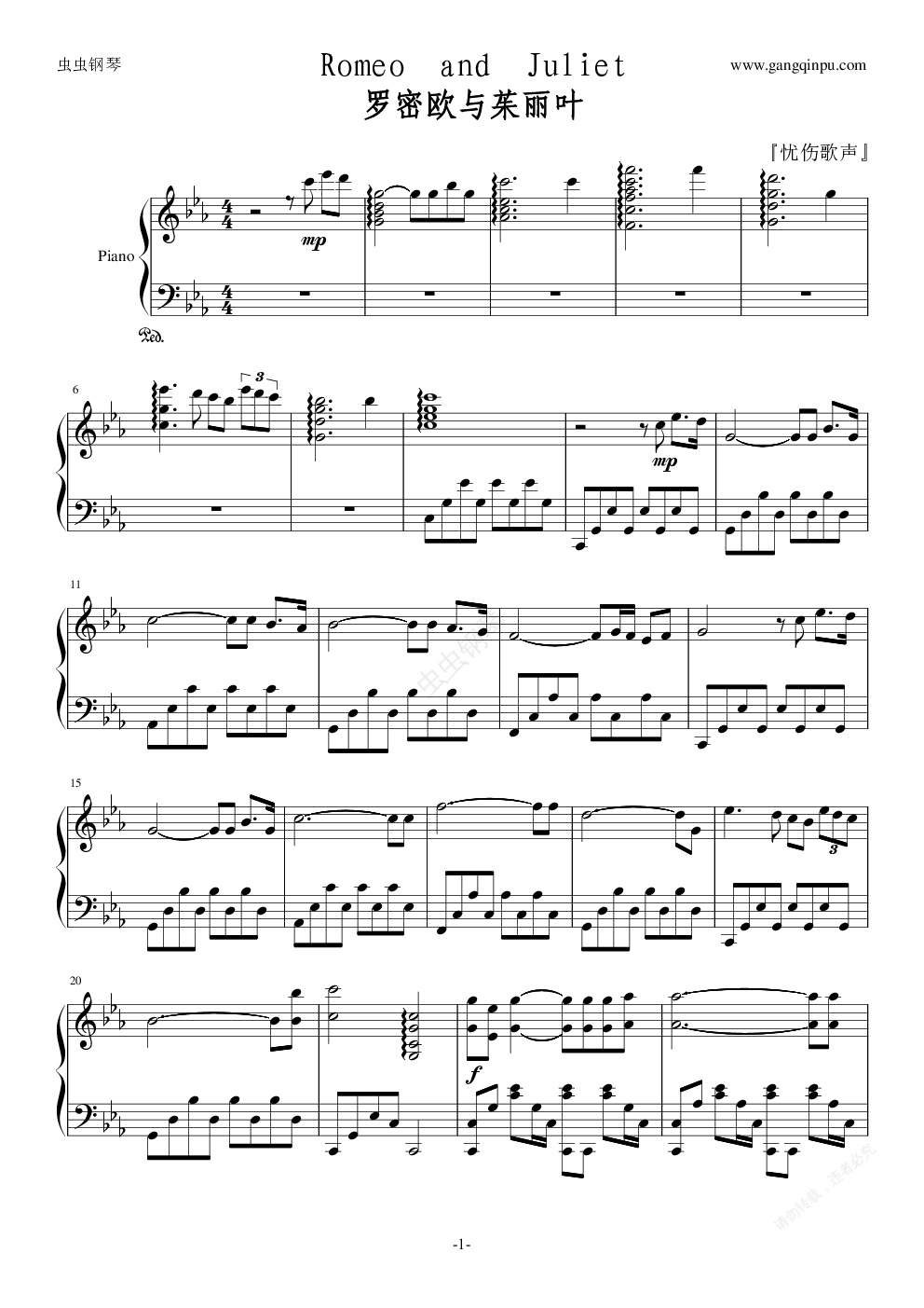 钢琴谱:《罗密欧与朱丽叶》纯钢琴演奏版