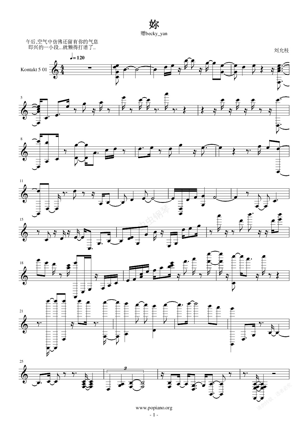 钢琴谱:妳