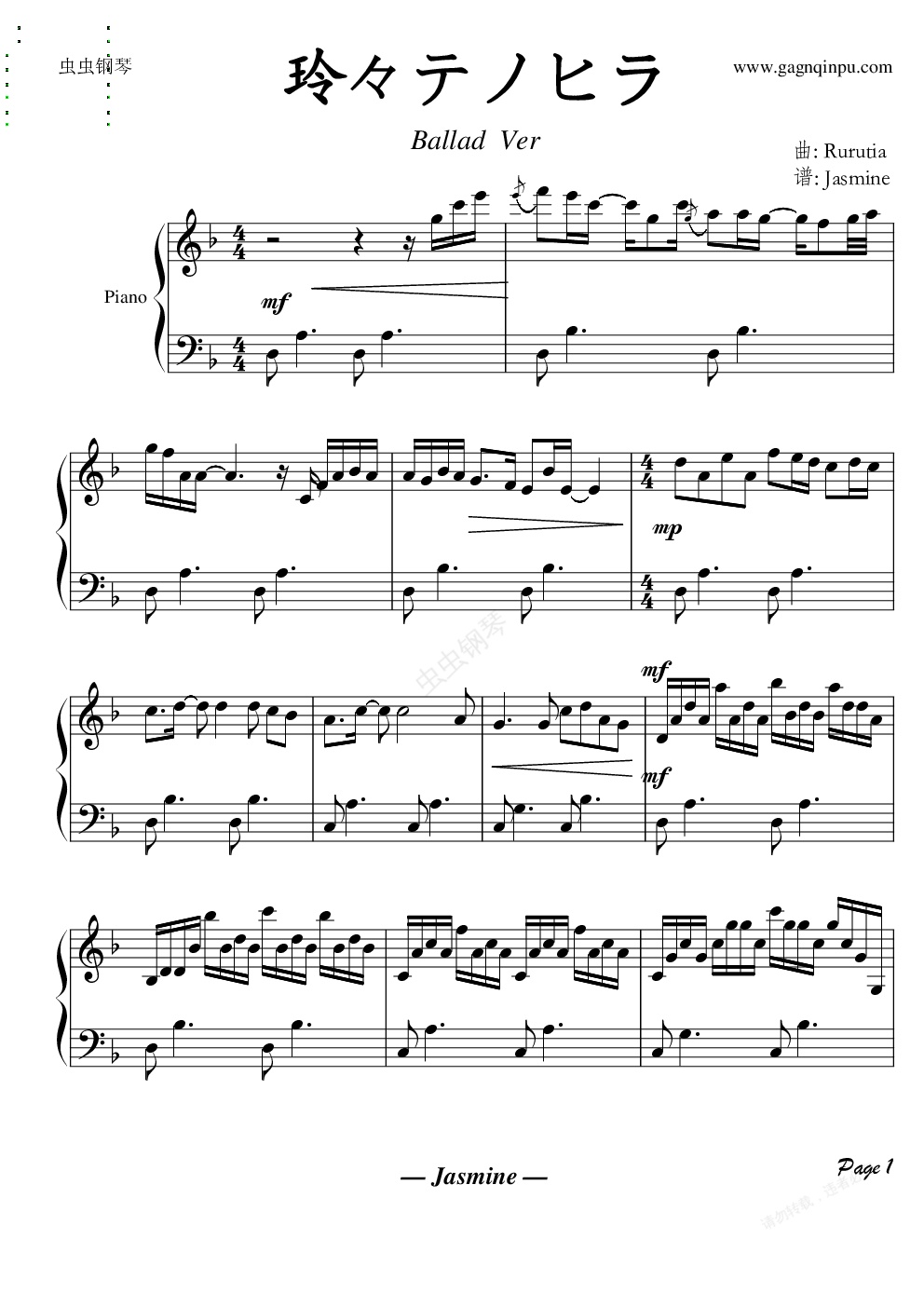 钢琴谱:【Rurutia】玲々テノヒラ - 钢琴伴奏谱