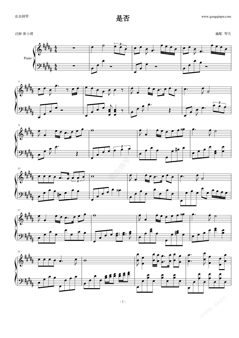 钢琴谱:是否