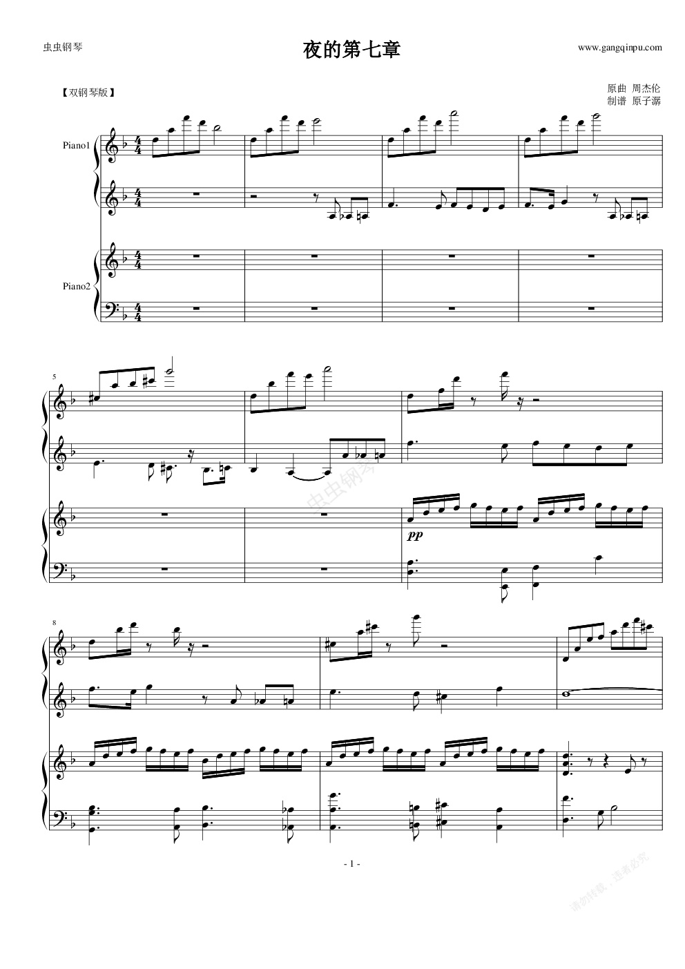 钢琴谱:夜的第七章(双钢琴)