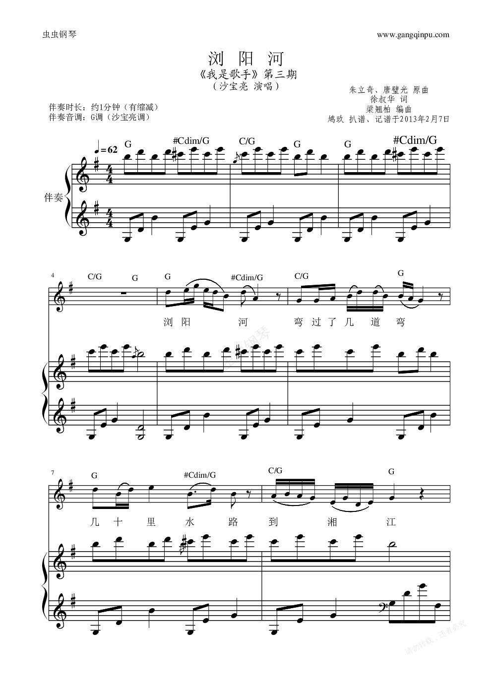 钢琴谱:浏阳河(《我是歌手》沙宝亮版本)