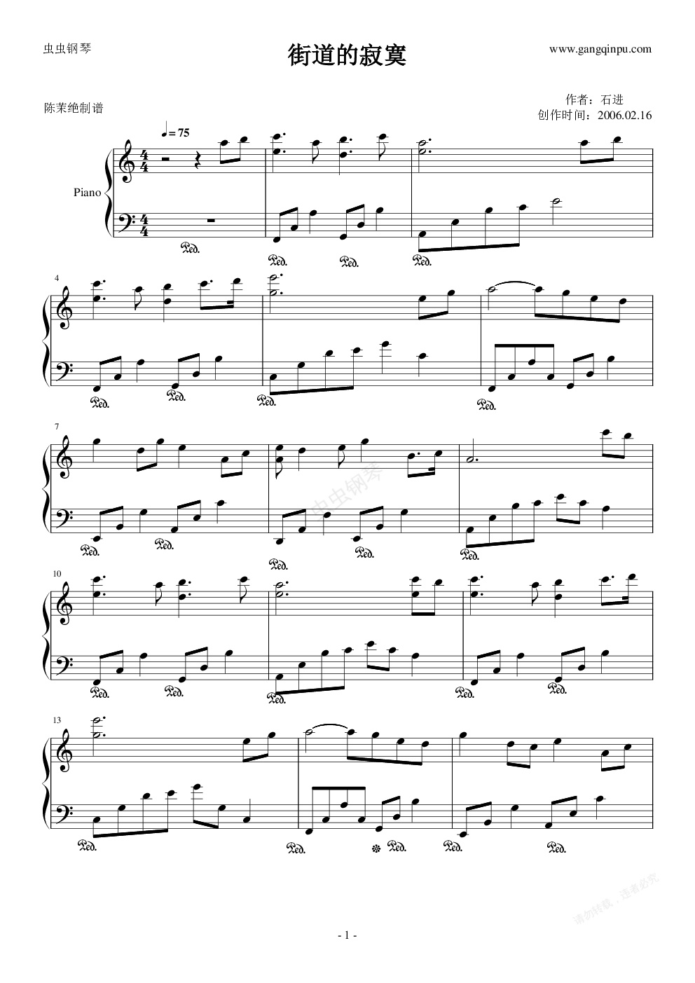 钢琴谱:夜的钢琴曲三--街道的寂寞