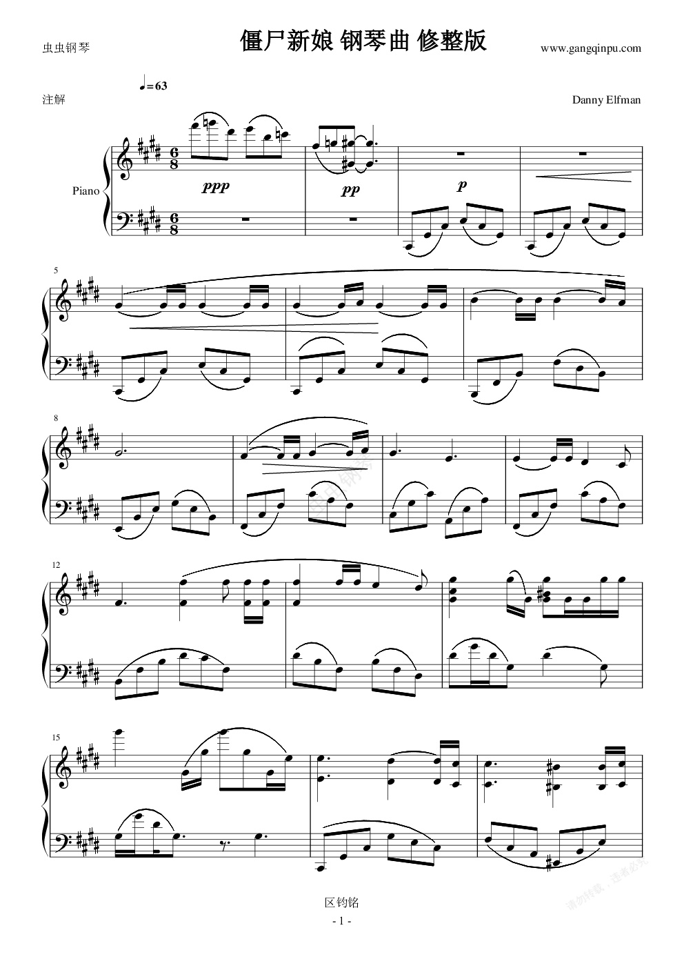 钢琴谱:僵尸新娘 钢琴曲 修整版
