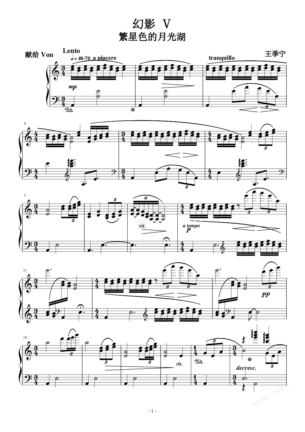 作品清新柔和唯美,作品就内容来说不难,但是就节奏来说就比较难控制了。试听只是一种处理方式,谱面中强弱速度的处理也只是提供处理的方向或者是提示。这首曲子就像散文一样,“形散而神不散”,不像之前几首曲子(例如《夜莺》《星空下的铃兰草》等)有较为明确的主旋律,所以自然要难掌握一些。