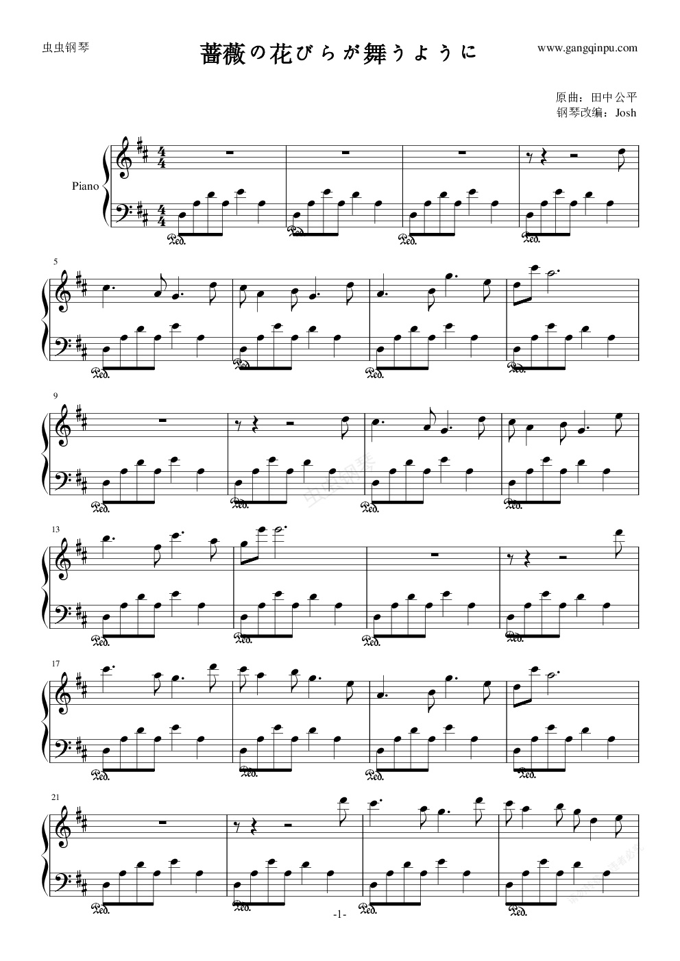钢琴谱:蔷薇の花びらが舞うように——出自氷菓(冰果)